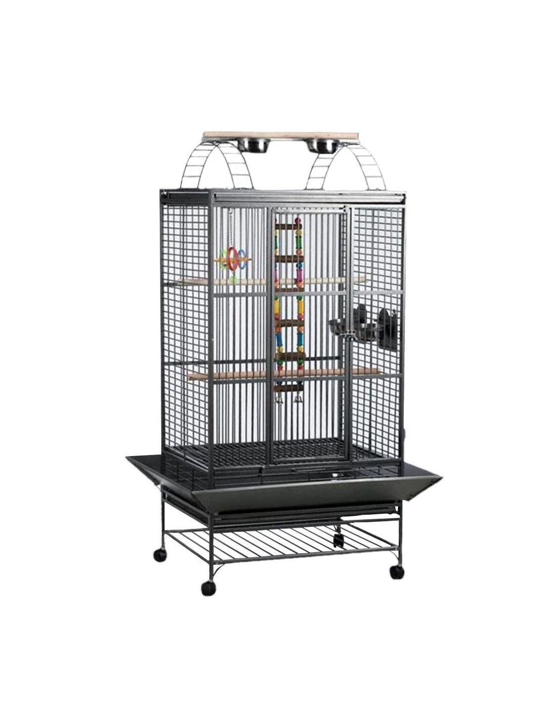 - com 4 comedouros de aço inoxidável (removíveis do exterior)