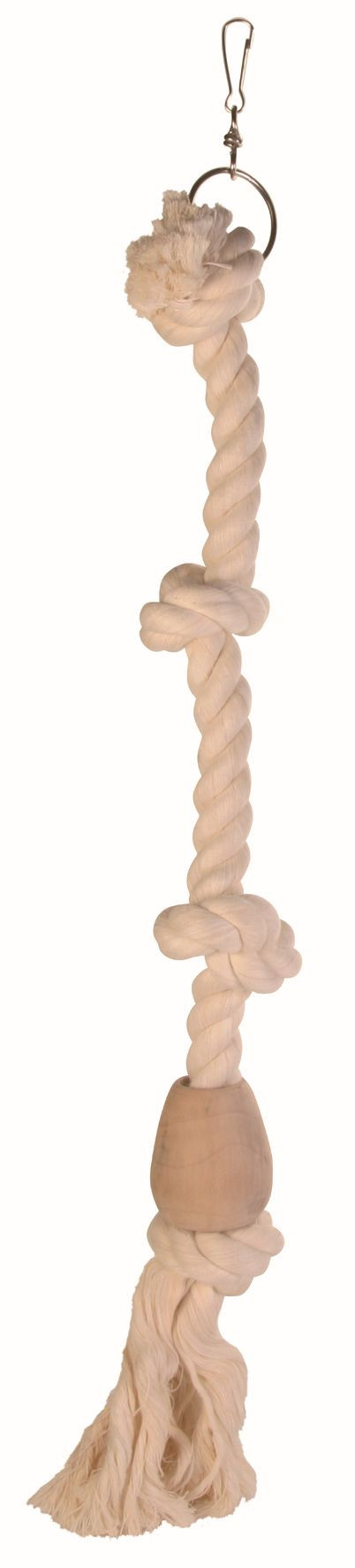 - Em algodão - Com bola de madeira e nós- Para caturras e papagaios- Medidas : 60 cm / 23 mm