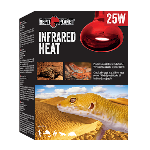 A Lâmpada da REPTI PLANET Infrared Heat gera uma radiação infravermelha e é ideal em combinação com lâmpadas de luz e lâmpadas UVB (por exemplo, Repti Planet Daylight Basking Spot, Daylight Frosted, Daylight Neodymium, Repti UVB) ou iluminação LED. A cor é obtida através da cor vermelha do vidro.