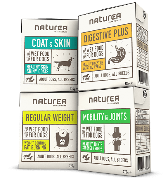Alimentação húmida funcional sem cereais para cães.