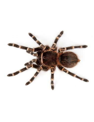 Tarântula escavadora que apresenta riscas ao longo das suas patas. Normalmente podem viver em conjunto com outros exemplares.